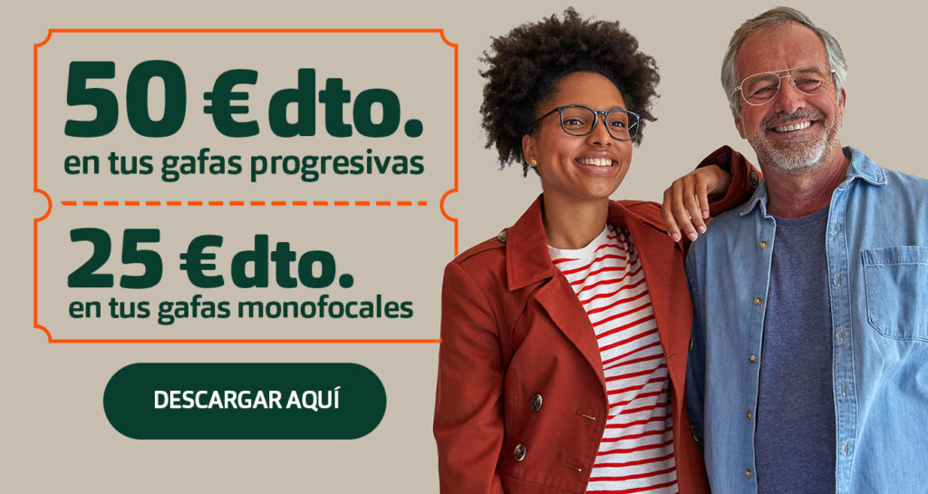 Lo esencial no es invisible a los ojos. No te la juegues. 50 euros de descuento en tus gafas progresivas y hasta un 65% menos en tus lentillas.